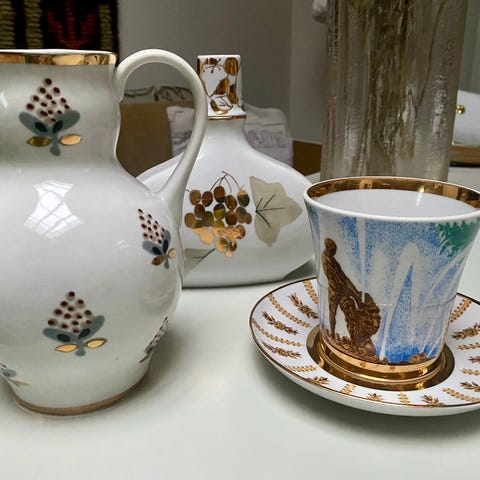 Lomonosovin astia esim. teen säilytykseen samovaarin päälle tai vaikka koristeeksi. Ainutlaatuinen harvinaisuus, kaunis ja täysin ehjä. Korkeus 15 cm.