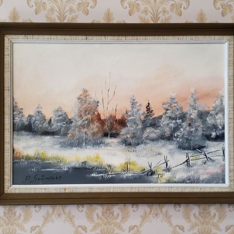 Taiteilija Göta Ruuthin öljyvärityö. Taulu on kehystetty.