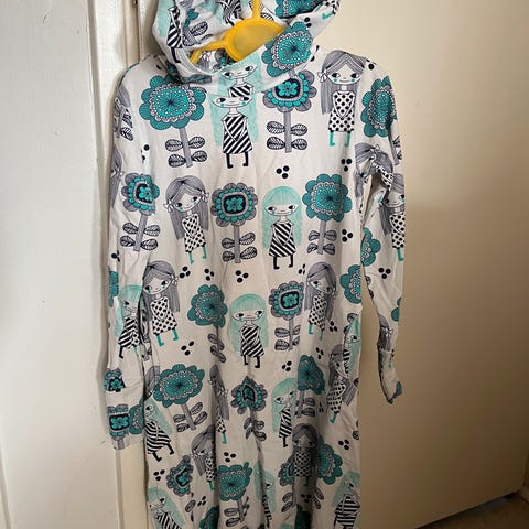 Myydään aivan ihastuttava kotimainen Taimi MUISTA ILOtunika. Voi käyttää pitkään kun voi ensin pitää mekkona ja kääntää hihat ja myöhemmin sitten tunikana. Koko 116/122 mutta minusta vastaa kokoa 110/116. Materiaali hieman paksumpi ryhdikäs puuvillatrikoo. Puuvillaa 95 % ja elastaania 5 %. Väri on vaalean liila ja vain paristi pesty ja värit kirkkaat. Muuten moitteeton, mutta yhden pikkuisen haalean tahran löysin, kun syynäsin (kuva4). Tahraa ei huomaa, kun meko on päällä.