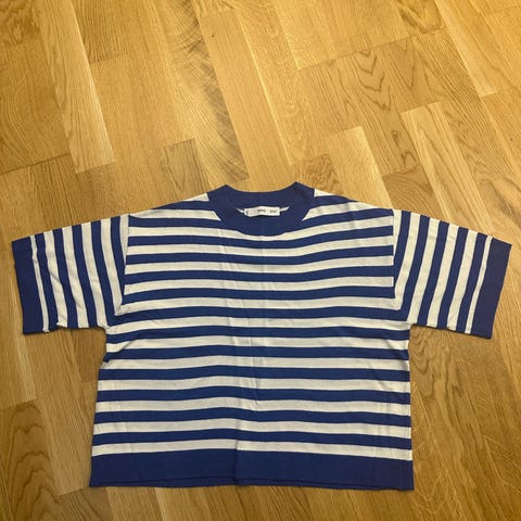 Mango sininen raidallinen kevyt neule