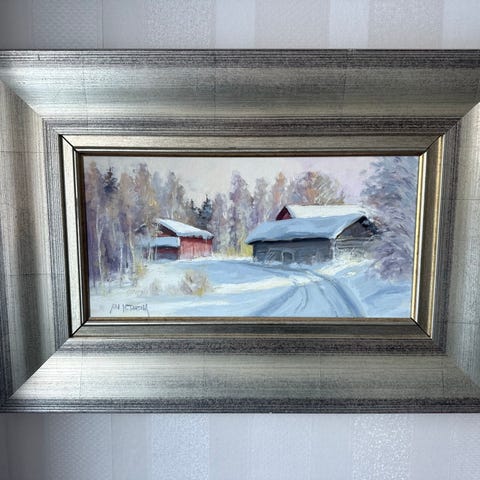 V. V. Pihasauna. Työn korkeus on 69 cm ja leveys 45 cm. Kehys 80 X 56 cm.