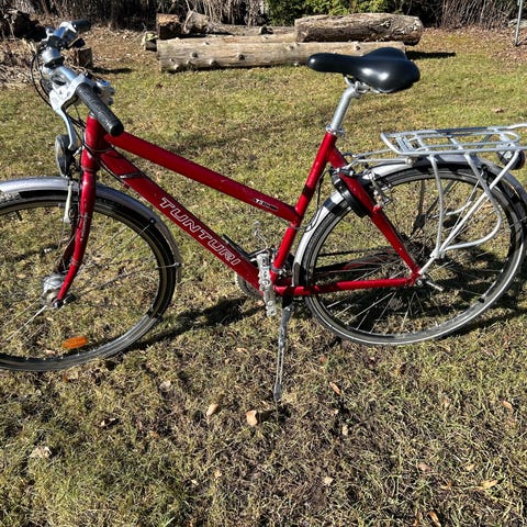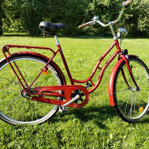 Tyylikäs Vintage-henkinen polkupyörä. Nahkainen istuin ja kädensijat. Satulaputken kiristin pikalukolla, Schwalben renkaat joissa sivulla ruskeavalkoinen väritys. Ajettu alle 30km, täydellisessä kunnossa.