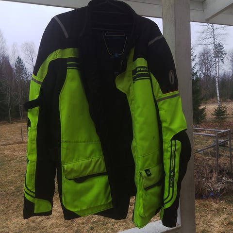 Rukka CorDura housut, säärisuojat ja pakarasuojat irroitettavat, koko normaali C2. IXS takki, olkasuojat ja kyynärsuojat irroitettavat,koko 3XL, noin 175-185cm pitkälle normaalivartalolle hyvä. Kypärä Shoei Raid 2, koko M 57-58 cm, ei kaaduttu eikä pahoin tiputeltu, pientä jälkeä on. Mieluiten koko setti kerralla, mutta voin myydä myös yksittäin.