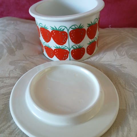 Arabian Pomonasarjan maitokannu. Omenakuviossa on kulumisen jälkiä, mutta muuten kannu on täysin ehjä ja erittäin hyväkuntoinen. Kulkeutuu myös Lappeenrantaan.