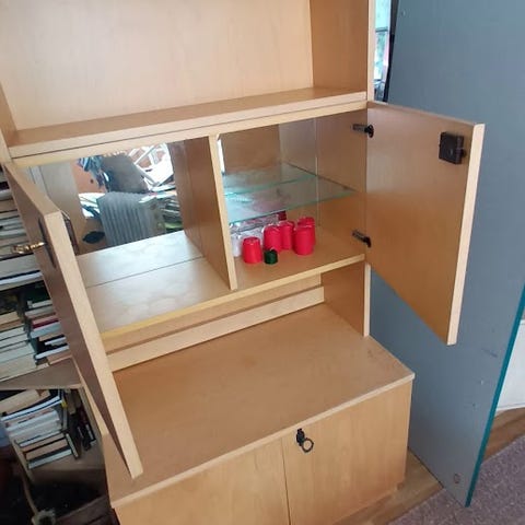 Käytetty, perusiisti hylly. Käytönjälkiä on, takaosassa maalia.