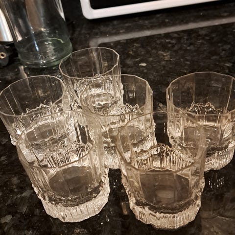 Luumun värinen kaadin ja lasit IIttala erisävyisiä.
