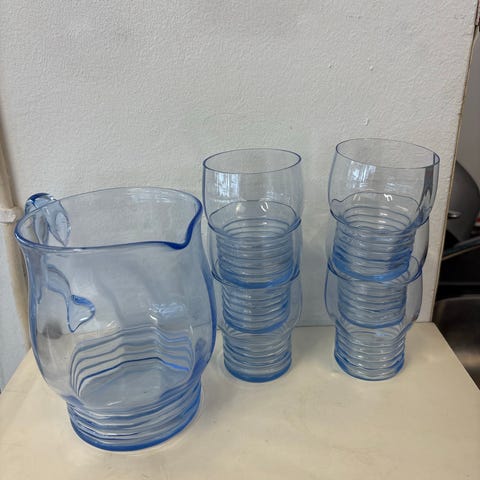 Sarpanevan lasikaadin ja 3 kpl juomalasia.