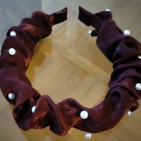 Myydään musta hiuspanta, jossa satiinikankainenrusetti.