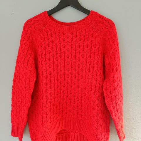 Uudehko v.punainen ohut neulepusero. Leveä malli, 3/4-hihat.