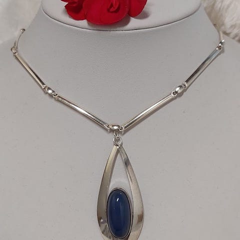 Hannu Äikäs 925 hopeinen kaulakoru violetin tummalla sävyisellä kivellä v. 1996