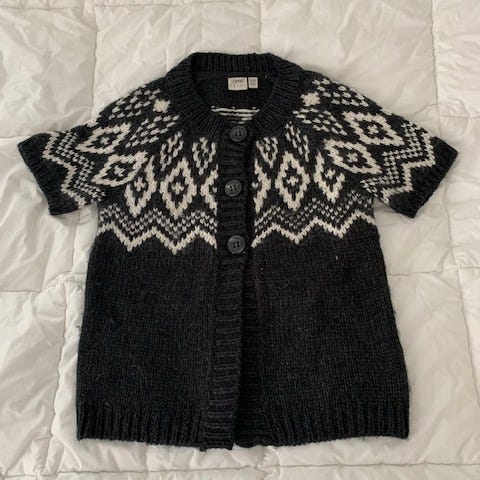 Siistikuntoinen musta V-aukon neule, kauniin yksinkertainen, paksupuuvilla.
