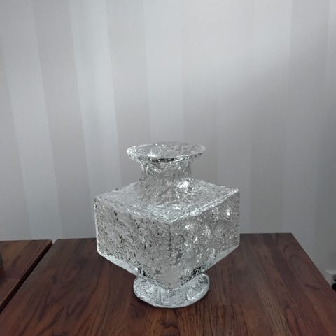 Lasimaljakko, Kanerva. Suunnittelija Björn Weckström, Nuutajärven lasi. Korkeus noin 17,5 cm, alaosan halkaisija noin 9,5 cm. Postitus onnistuu lisämaksusta.