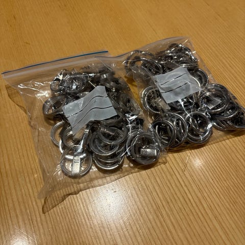Puiset verhopidike renkaat - käytettyjä, mutta siistejä - 24 kpl irtonaista - HUOM, kuvassa oleva avaamaton pussi myyty!a - kaikki yhteensä 15 e