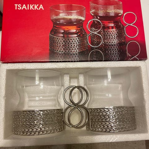 Timo Sarpanevan vuonna 1957 suunnittelema Tsaikka-lasi on yksi Iittalan klassikoista. Tsaikka-lasi on suunniteltu kuumajuomalasiksi, ja siitä voi nauttia vaikka glögiä tai teetä. Pidike on niklattua messinkiä. Pidike sai muotonsa, kun Sarpaneva vieraili vetoketjutehtaassa. Vetoketjun hakaset tehdään metallilevystä, ja hukkamateriaali on täynnä pieniä reikiä.