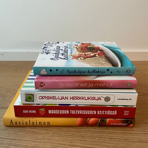 Tässä kirjassa on kiinalainen, intialainen, malesialainen thaimaalainen sekä japanialaisia ruokia. Kirjan hinta 4 euroa.