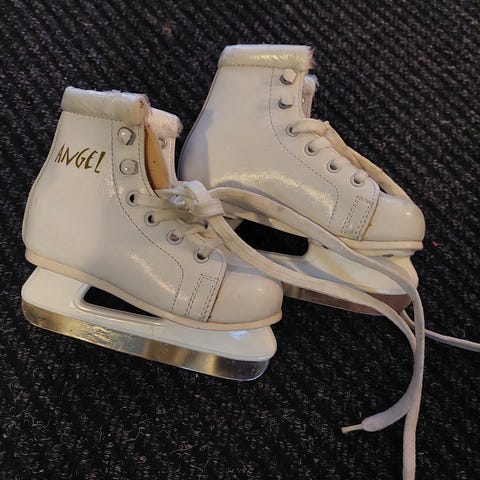 Tyttöjen luistimet. Koko 23. Pohjallisen pituus noin 14.5 - 15.5 cm.