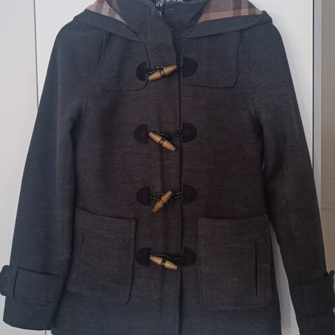 Myydään H&M:n koon 36 musta/ tummanharmaa villakangastakki. Siisti kunto.