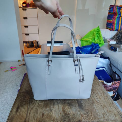 Goodjob-merkkinen käyttämätön, kaapissa säilössä ollut upea laukku. Kantokahva löytyy niin käy myös käsilaukkuna. Anna vaikka lahjaksi. Nouto, koska laukku iso. Kangasta/muovia