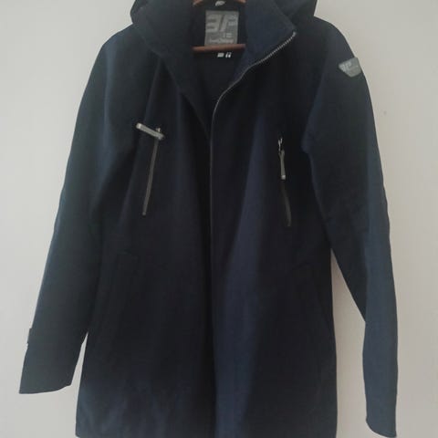 Erittäin siisti ja hyväkuntoinen. Irroitettava huppu, tarrakiristys hihan suissa, tuplavetoketju. Kainalosta kainaloon n. 50 cm, niskasta helmaan n. 76 cm.