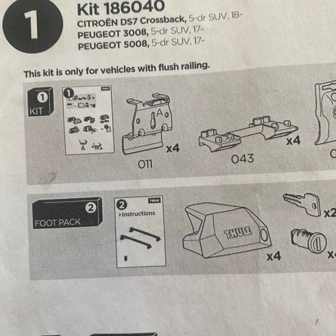 Thule merkkikohtainen asennussarja auton katon (kiinteä kattokisko) ja taakkatelineen jalan (Thule Evo Flush Rail TH7106 tai Thule Edge Flush Rail TH7206) väliin.