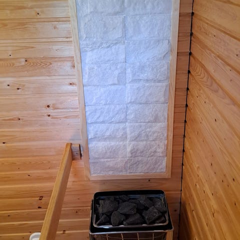 Verhoilukivet Pikku Pippuri, 5 laattaa jäljellä: 60x15 cm. Itse käytin kiukaan taustakivinå.