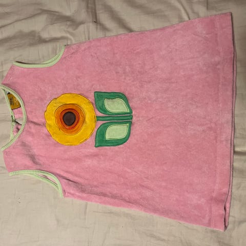 Sininen me&i hihaton lintu tunika etutaskulla, kirkas sininen. koko 86-92. Ehjä, tahraton ja siisti.