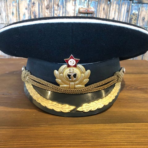 Neuvostoliiton upseerin paraati koppalakki. Sisäpuolella nahkainen venäjänkielinen tietolappu ja koko 56.