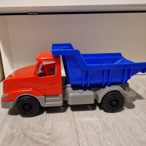 Plasto muovinen kippiauto, hyvässä kunnossa, sekä äänitoimintoinen/ liikkuva veturi. Junan keltaista nenää kun painaa, kuuluu junan tööttäystä ja kun ensimmäistä hahmosta painaa, lähtee juna liikkeelle ja soittaa sävelmiä. Hyväkuntoinen,toimiva veturi.