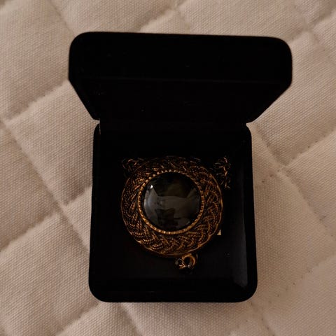 Pentti Sarpanevan pronssinen kaulakoru. Ketju 64 cm, riipus 4,6 x 4,6 cm.
