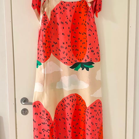 Kuvan uudenveroinen Marimekon silkki-puuvillamekko, todella upea. Voin lähettää.
