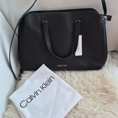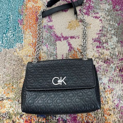Calvin Kleinin musta kiiltonahkainen iso Hobo laukku. Täysin käyttämätön, laput kiinni. Säilytetty omassa suojapussissaan.