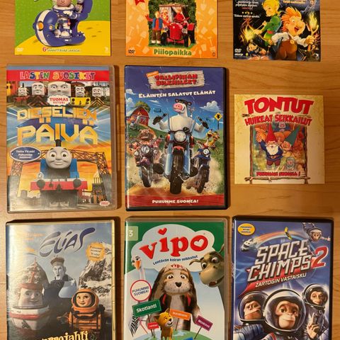 Katto Kassinen.Kössi Kenguru. Dibitassut. Muinaisten petojen matkassa.Tatu ja Patu.Tom&Jerryt.Pyramidien maa (1kpl).Aurinkoprinsessa myyty.