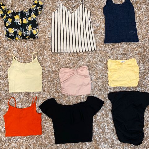 Kuvan mukainen satsi erilaisa puseroita ja toppeja , hinnat merkitty omille kohdillensa