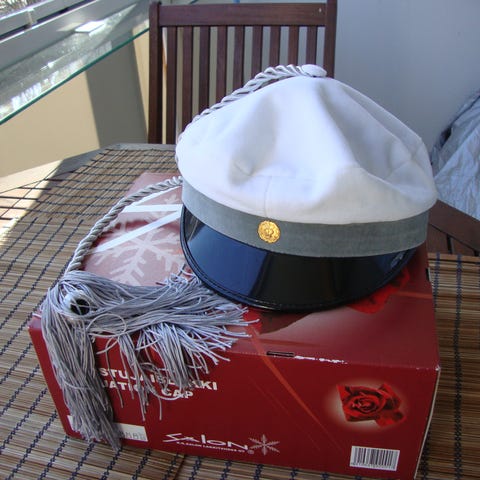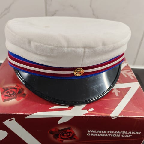 Lakki joka sopii kaikille ammattiin valmistuneille.Yhteen kertaan jäi itsellä käyttö joten ei uuttaan kummee.Koko lakissa on 55.