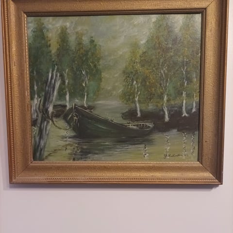 J. Juhola kesäinen venevaja öljyvärimaalaus