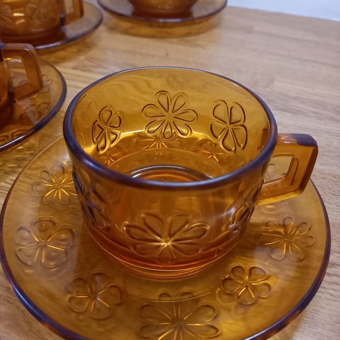 Viisi Arcopal kahvikuppia. Valkoposliinia.