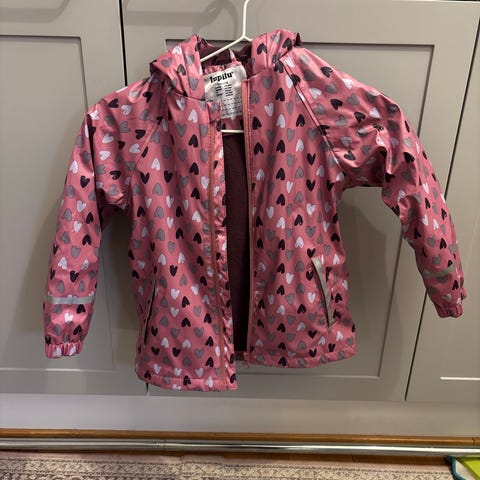 Siisti ja hyväkuntoinen sadetakki, jossa lämmin fleecevuori. Koko 110/116.