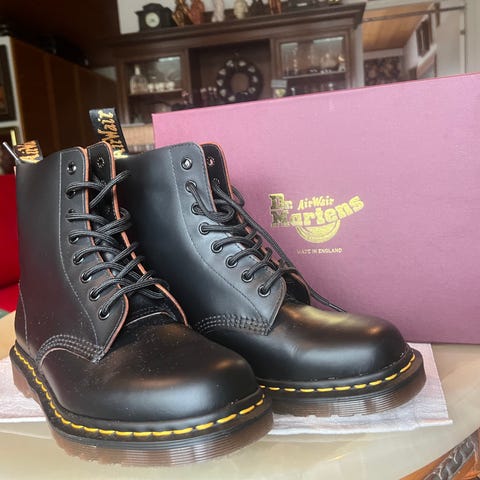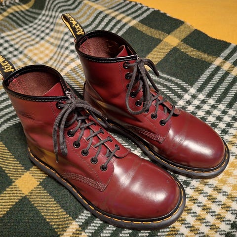Kaksi kertaa ulkoilutetut viininpunaiset Vintage 1460 Dr.Martensit. Koko 38. Ovh 270 euroa. Hyvä tilaisuus kokeilla kenkien sopivuutta, itse tilasin aluksi liian pienet ja palautus piti itse maksaa Amsterdamiin.