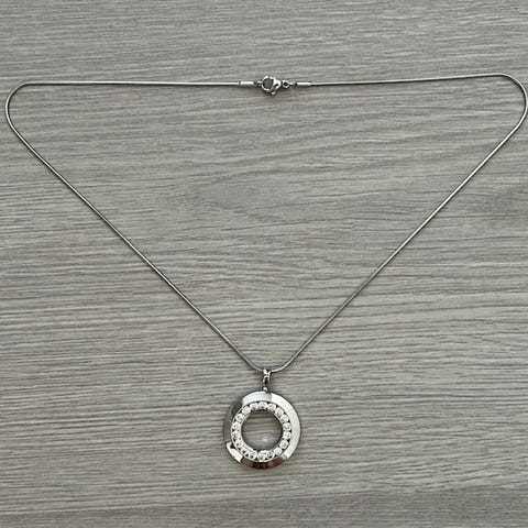 Ihana pyöreä kaularengas ja riipus missä helmi.