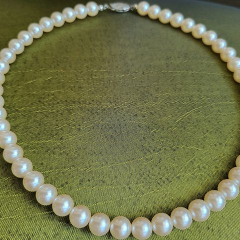 Puinen helminauha, pituus 70 cm. Menee helposti pujottaen kaulaan, ei lukkoa. Saattaa olla Aarikan tai sitten ei. En ole itse ostanut, niin tieto puuttuu.