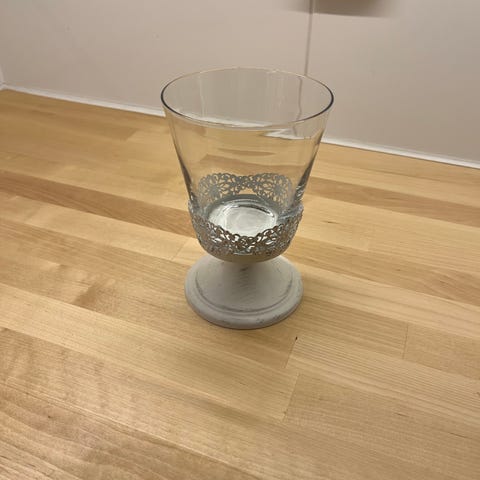 Kolme koriste-esinettä, kaksi keraamista pulloa / maljakkoa ja yksi vanha tinattu kynttilälyhty (ei ole ollut käytössä).
