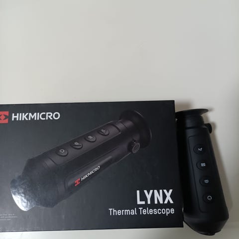 Hikmicro E20Plus lämpökamera . Laite on pieni, helposti käsiteltävä kamera. Mukana kuljetuskotelo ja kierretty liitäntäjohto. Voidaan liittää puhelimeen tai tablettiin USB c liitäntä