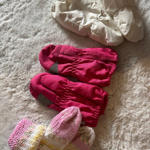 Kaksi paria käsinkudottuja vauvan/taaperon villalapasia, pitkä varsi, ei peukkuja. Erinomaisessa kunnossa. Meillä käytetty vastasyntyneestä n. puolitoistavuotiaaksi