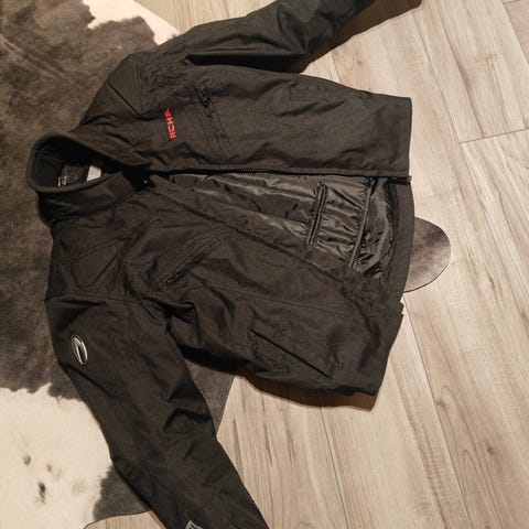 Myydään miesten ajo takki. Merkki Richa. Malli Gotham jacket. Suojaus kyynärpäissä sekä olkapäissä. Suoja myös selässä. Valmistajan ilmoittamat mitat ovat koolle S, rinta 98-102, vyötärö 84-88 sekä lantio 91-96. Hyväkuntoinen ajotakki, ainoastaan hiukan pölyinen. Ajotakki pesuohje on käsinpesu, pesu jää ostajalle tämä huomioitu hinnassa.