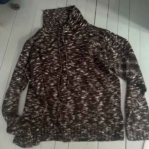Siisti ja ok kuntoinen neule. Väri beige , tummanruskeat raidat