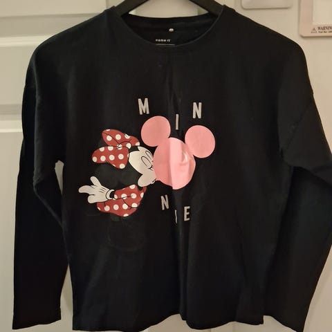 Kuvannäköinen Minni Hiiri kääntöpaita koko 152/164,vähäistä kuva ja värikulumaa muuten ehjä ja käytettävissä. Nouto tai posti. En tee toridiiliä.