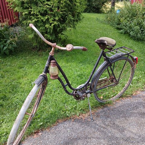 Harvinainen SOK-merkkinen naistenpyörä puisilla vanteilla ja lokareilla 20-luvun alkupuolelta. Säilynyt ikäisekseen hyvässä ja alkuperäisessä kunnossa, ja lisävarusteena mukaan tulee paikallaan oleva karbidivalo.