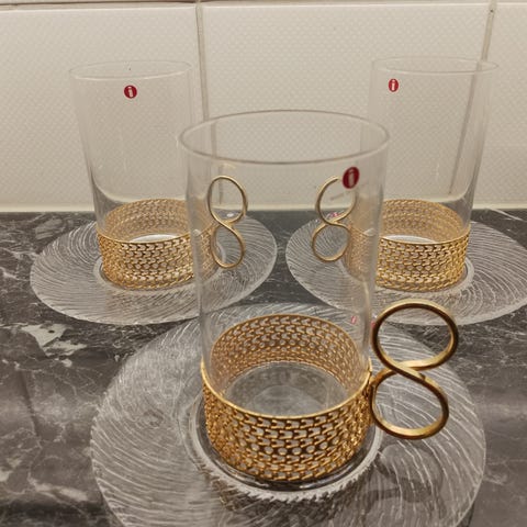 Hieno ehjä klssikko kuumajiomalasi kultaisella pudikkeellä Iittala Karaatti.