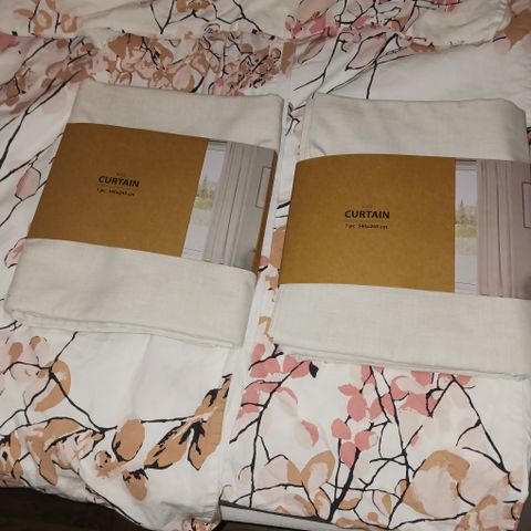 Verhon pinta on hieman kiiltävä ja eläväinen. Verhoissa molemmat pitkät sivut ommeltu. Alakäänne 13 cm. Nipsukiinnitys. Verhon väri vaihtelee jonkun verran valon mukaan.