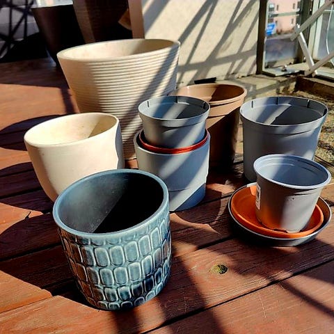 Myydään 4 posliinista ruukkua, voi käyttää esim. kukkaruukkuina.